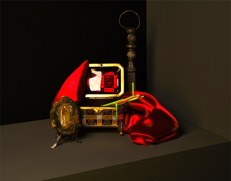 Siempre femenino, su último trabajo está inspirado en la estética flamenca del siglo XVII. Maya Ines Touam crea composiciones contemporáneas de artesanía tradicional pero también modernas. En sus naturalezas muertas, ella desvía los objetos de su significado. Mezcla fantasía con poesía, mezcla objetos simbólicos y objetos árabes cotidianos. Ella cuestiona sus símbolos y revela hábitos de consumo. Elementos naturales o artefactos, son los objetos de una temporalidad y geografía identificables. A través de sus composiciones, Maya Ines Touam cuestiona las representaciones culturales del cruce entre Oriente y Occidente. Por lo tanto, se enfrenta al mismo tiempo que hace visible un patrimonio múltiple teñido con el folclore. Su proyecto artístico nace de una visión, concretada por una serie de investigaciones iconográficas, semánticas y simbólicas al servicio de composiciones precisas y equilibradas. Maya Ines Touam cuestiona el predominio y el valor dado a los objetos al mismo tiempo que rompe su poder simbólico. Intenta cuestionar las representaciones de la originalidad y el cliché a través de objetos que tienen un simbolismo diferente en ambos lados del Mediterráneo. En este archivo fotográfico, Maya Ines Touam encarna las preocupaciones de la globalización.