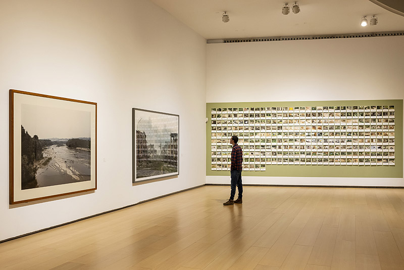 La fotografía en medio. Fotografía en la colección del IVAM desde 1950 reúne obras de destacadas figuras internacionales: Robert Frank, Lee Friedlander, John Baldessari, Gabriele Basilico, Bern & Hilla Becher, Georgy Crewdson, Rineke Dijkstra, Hamisch Fulton, Douglas Gordon, Rula Halawani, Bouchra Khalili, Candida Höfer, Axel Hütte, Sigmar Polke, Richard Prince, Robert Rauschenberg, Allan Sekula, Laurie Simmons, Thomas Ruff, Wolfgang Tillmans, Valie Export y Gillian Wearing. Así como una selección de artistas del ámbito español y valenciano: Bleda y Rosa, Pilar Beltrán, Javier Codesal, Joan Fontcuberta, Rosell Meseguer, Mira Bernabéu, Carmen Navarrete, Montserrat Soto, Eulalia Valldosera y Darío Villalba.