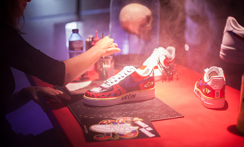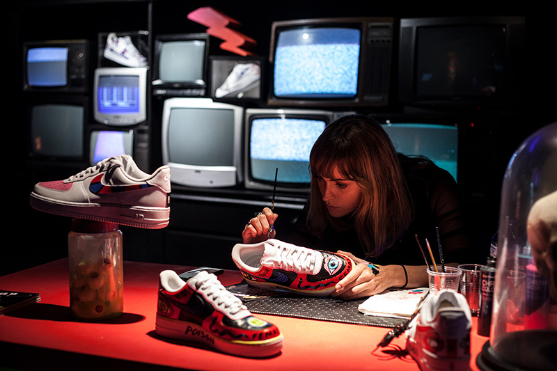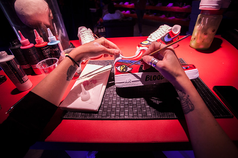 Arriba y Abajo: Mercedes Bellido customizando en directo unas AF1