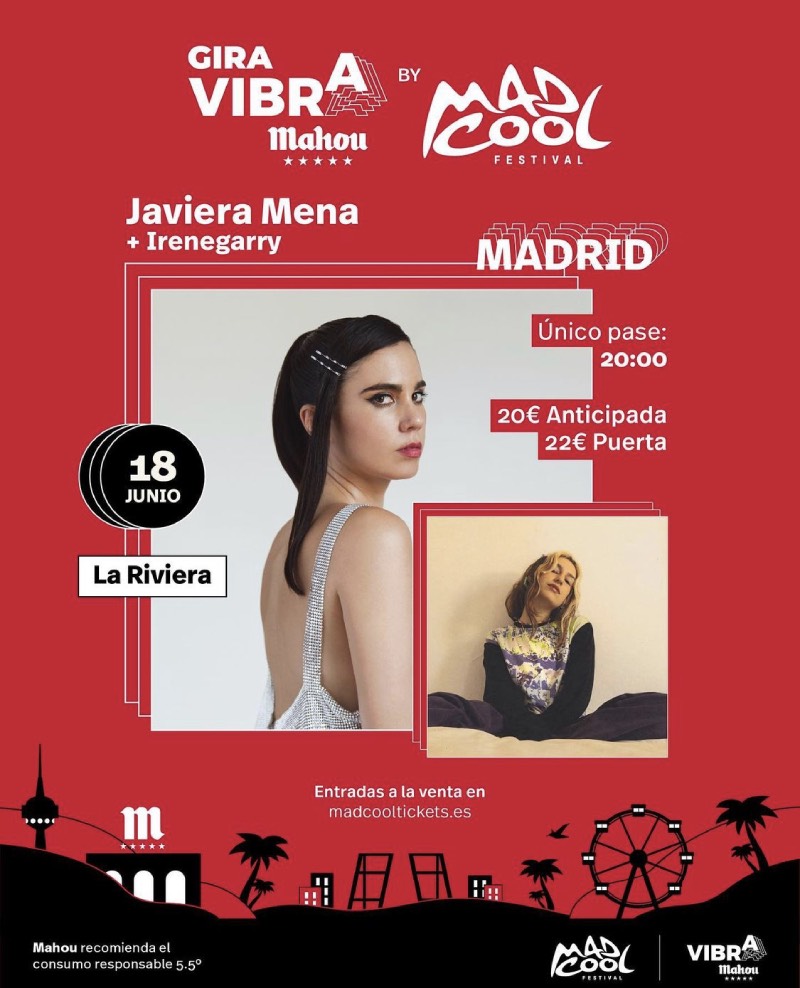 Cartel Javiera Mena e Irenegarry Gira Vibra Mahoy by Mad Cool 2021/imagen via @vibramahou