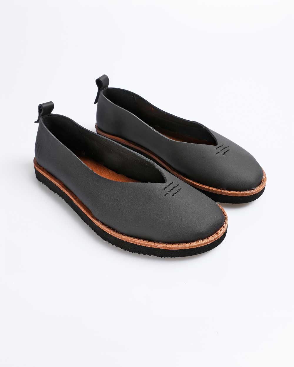 (Pilar Jaraquemada) Las tres piezas principales son la suela, la plantilla y la pala . Reducir el número de piezas significa eliminar costuras y refuerzos innecesarios que suelen generar rigidez y rozaduras. En AiAm, cada zapato se construye con piel natural, lo que permite un ajuste más orgánico al pie y una mayor flexibilidad adaptándose como un calcetín.