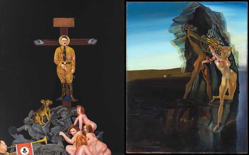 Izq: Blalla W. Hallmann, Der Pop-Star, 1991. Fonds de dotation Jean- Jacques Lebel, Musée d’arts de Nantes. Der: Salvador Dalí i Domènech, Guillem Tell i Gradiva, 1932. Cortesía de Fundació Gala-Salvador Dalí, Figueres © VEGAP, Barcelona