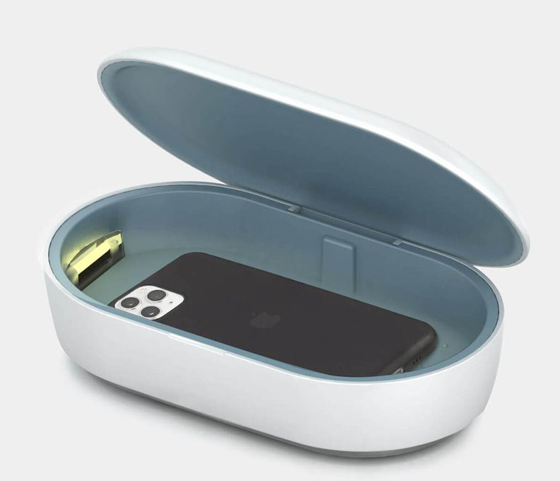 La compañía californiana Totallee, especializada en fundas para móviles, ha lanzado un cargador inalámbrico que además sirve para desinfectar móviles u otros pequeños objetos. Una cajita que tiene dos modos de desinfección: El estándar que dura 30 minutos y el exprés que dura 18 minutos. Con una lámpara de 2W de potencia, dos años de garantía, y un precio de 119 dólares.