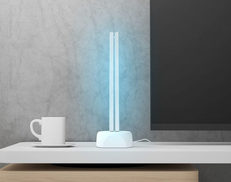 Una lámpara de esterilización UV que tiene un tamaño de 141 x 62 x 52 mm y una potencia de 2,5 W. Funciona con una batería de litio de 700 mAh. El área efectiva es de aproximadamente 2 metros cúbicos. Emite luz de tipo UV-C y también iones de ozono. Hay que usarla cuando la habitación está vacía. Una vez encendida, tiene un temporizador de 30 segundos para abandonar la habitación, después la luz se activa durante 30 minutos. Disponible en dos colores: en negro con un precio de 18,56 € y en blanco que cuesta un euro más.