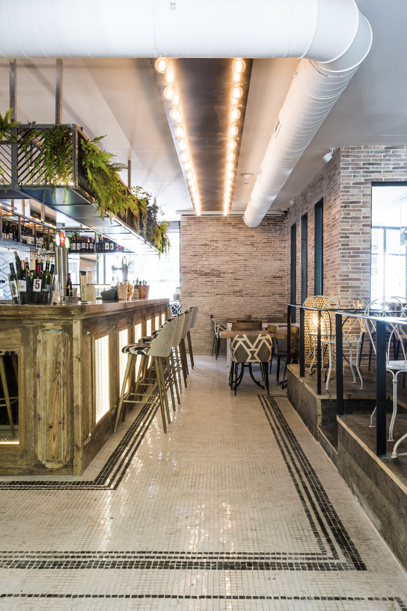 Es un espacio grande con ese interiorismo industrial/tropical al que el grupo nos tienen acostumbrados. Los dueños de La Mamona le llaman cervecería, y lo es, pero también es un restaurante en toda regla. El espacio tiene una zona de barra con mesas altas y taburetes para aquellos que quieren picar algo de forma más desenfadada disfrutando del punto divertido y dinámico. Para los que odian comer de pie o de una forma informal, está el salón del fondo con mesas de todos los tamaños, de dos para parejas, mesas redondas para cinco y grandes mesas para grupos. El Salón se transforma en terraza en verano.