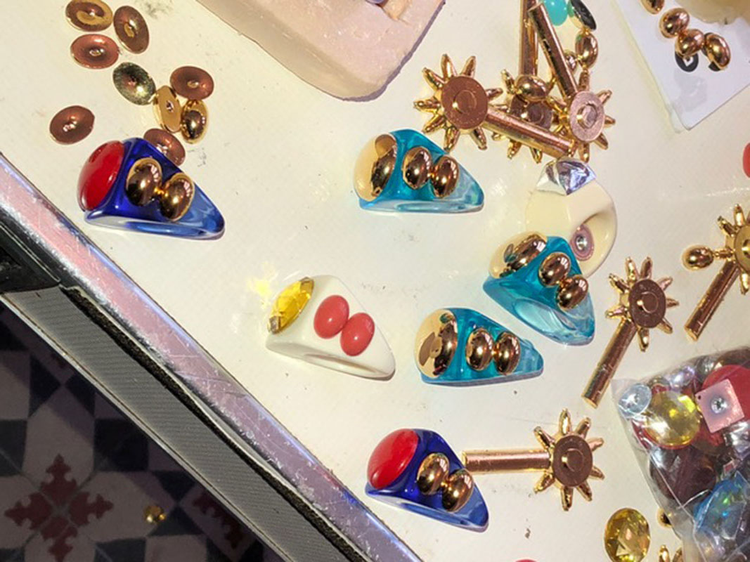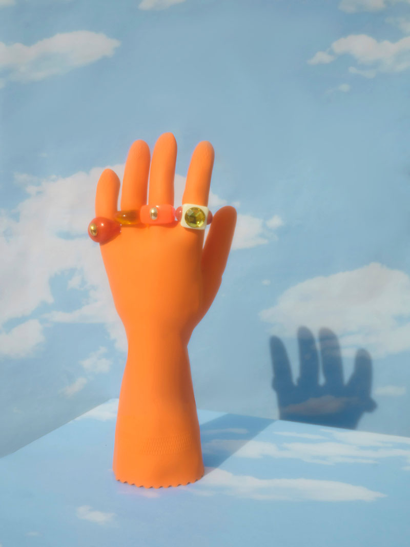 ¿Cuál ha sido el proceso creativo que tienen detrás estos anillos? Desde hace mucho creo mis propias piezas de bisutería y los anillos fueron el primer producto con el que realmente me sentí cómoda para lanzar mi marca, ya que soy una gran amante del plástico, de lo vintage y del diseño.