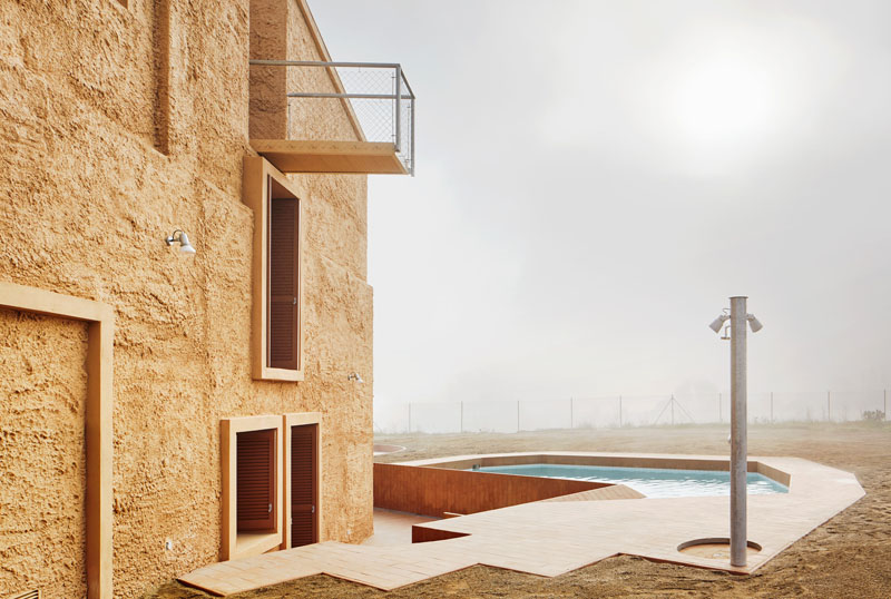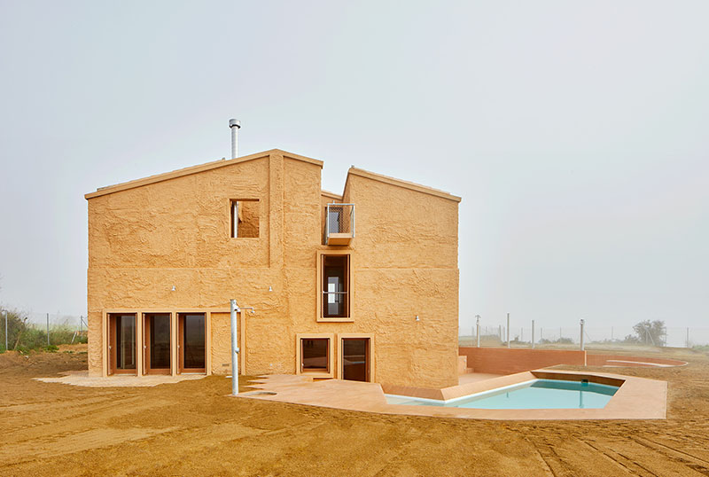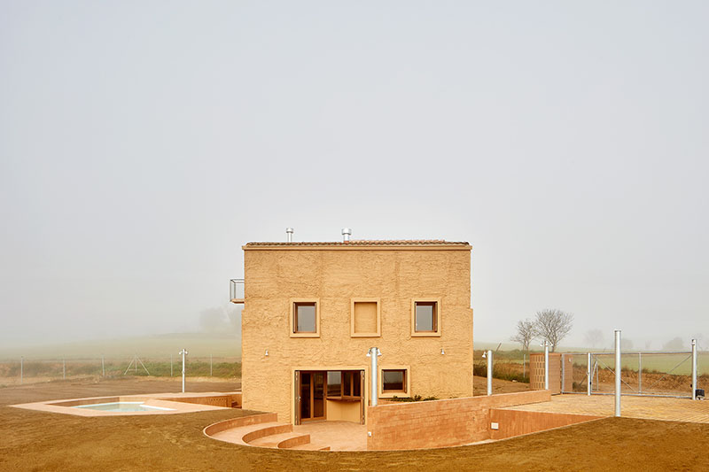 Arquitectura G optó por redefinir el entorno inmediato de la masía protegiéndolo de la llanura abierta en la que se encuentra, para ello excavaron 1 m hasta la cota de la terraza desde la que se accede a la masía y la comunica con el resto de la parcela definiendo de este modo un paisaje artificial que media entre la masía y el campo.