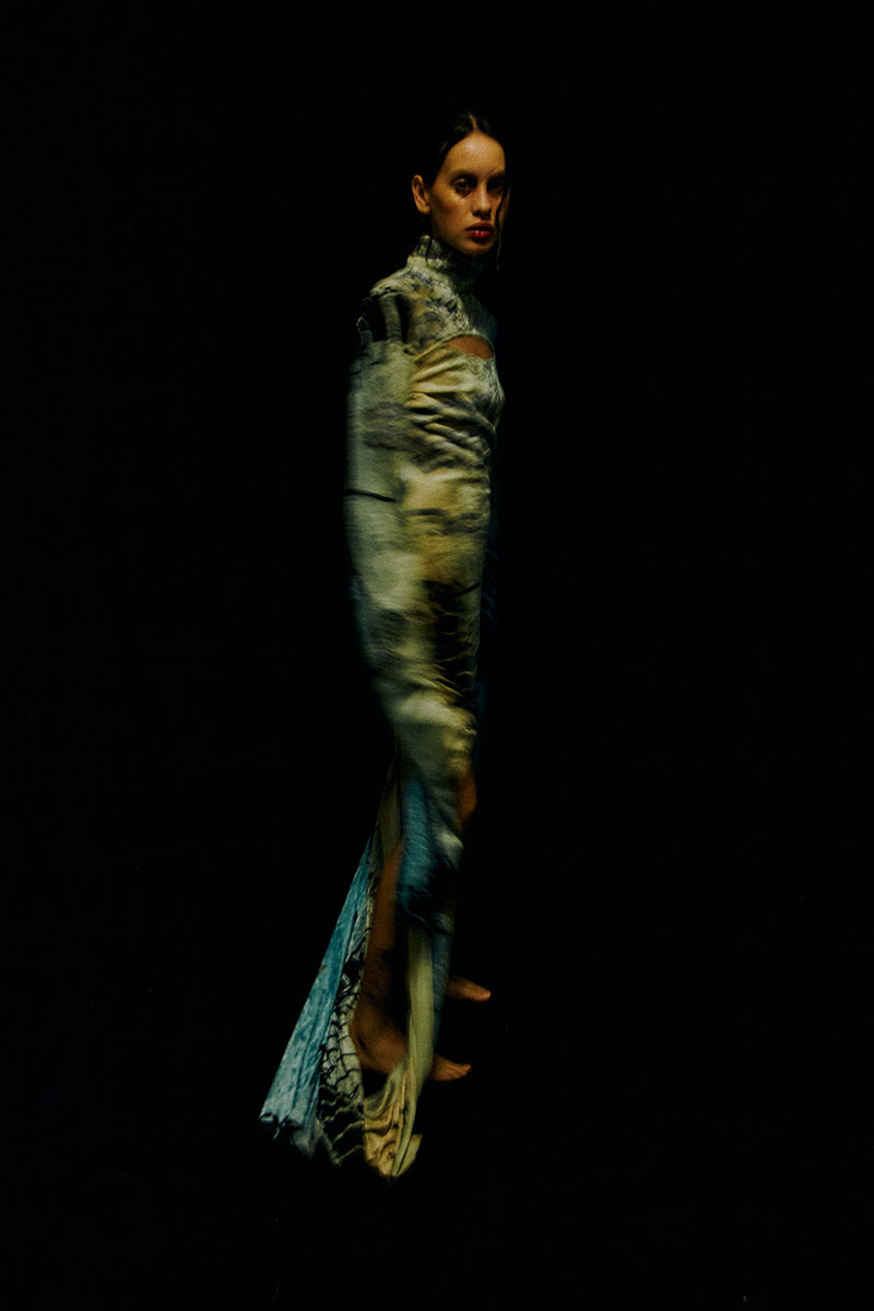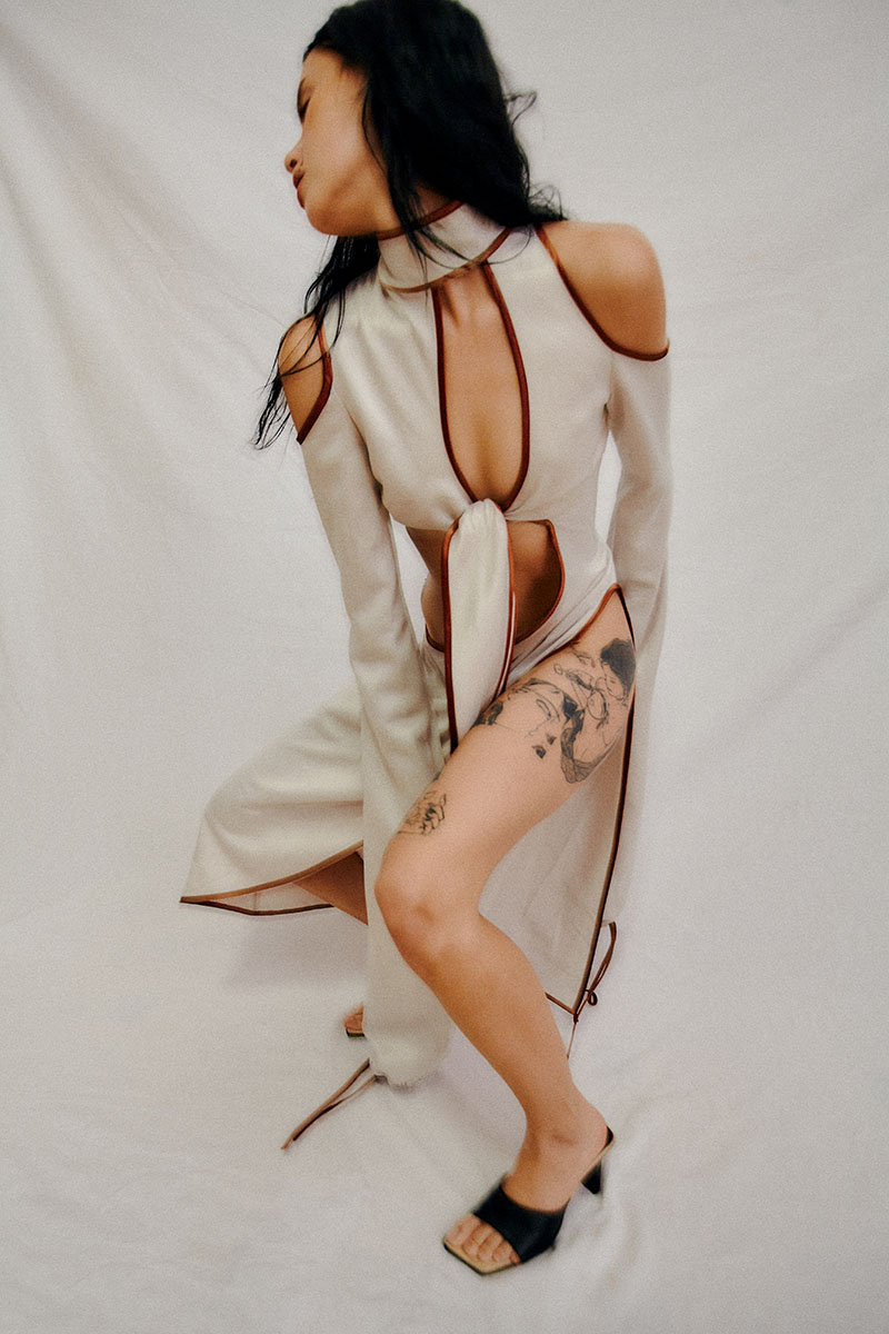 Veo en ella la dualidad que quiero representar con mis creaciones, la mujer de la que quiero hablar. Su mirada es fuerte y frágil al mismo tiempo, es solemne y empática, pero oculta la fuerza y la rabia de querer luchar por cambiar las cosas y eso nace de dentro, es belleza interior. Desde que la conocí tuve clarísimo que quería que fuera ella la imagen de esta colección, en mi cabeza no podía ser otra persona y le estoy muy agradecida por haber querido formar parte de esto.