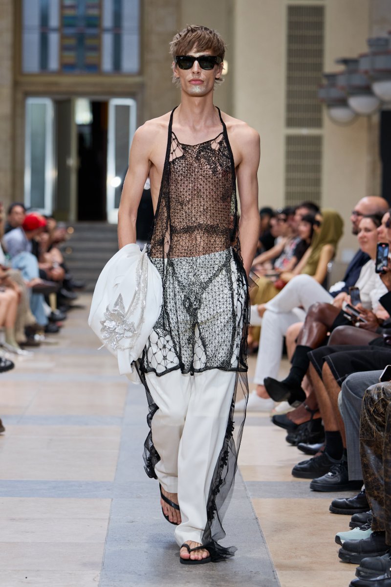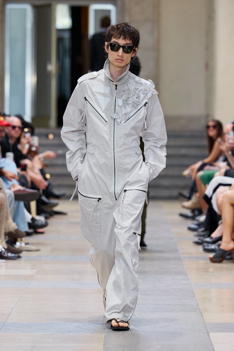 La nueva colección de David Koma ss26 no es un ataque al menswear ni a la masculinidad clásica; es un refresh más que necesario que se hace a través de arquetipos clásicos. Aquí, podemos ver un fuerte componente de streetwear puro y duro; complementado por menswear clásico y timeless. Pero también, vemos corporeidad en construcciones más risqué, detalles que suavizan lo masculino y una paleta de colores llena de contrastes.