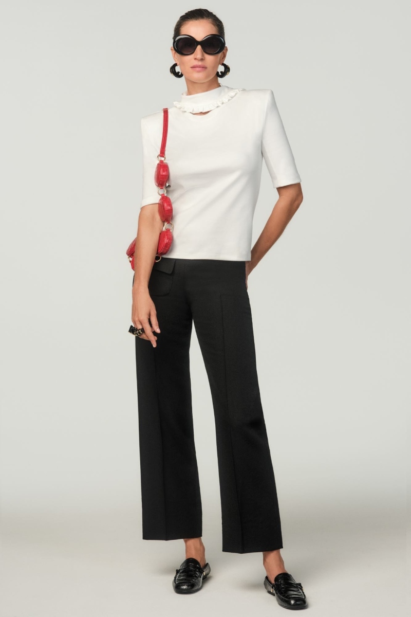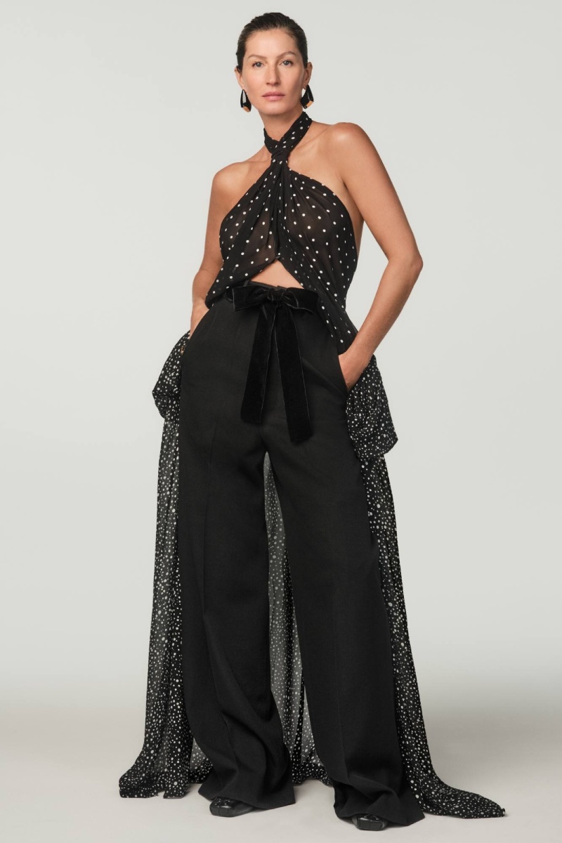 Para los looks de mujer, Stefano Pilati X Zara apuesta tanto por looks de sastrería como por vestidos negros de escándalo. También, vemos botas altas de cuero como elemento fundamental de estos looks, a juego con tops abiertos y atrevidos y algún que otro numerito de polka dot. Y claro, para completar estos looks, las gafas de sol y los pendientes se presentan integralmente en negro, para no desentonar.