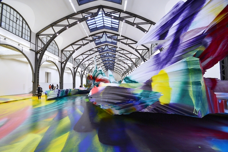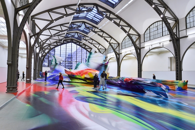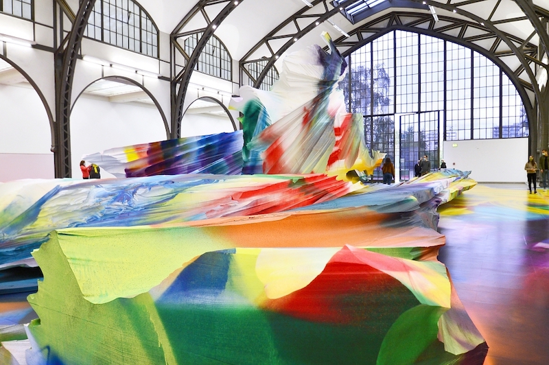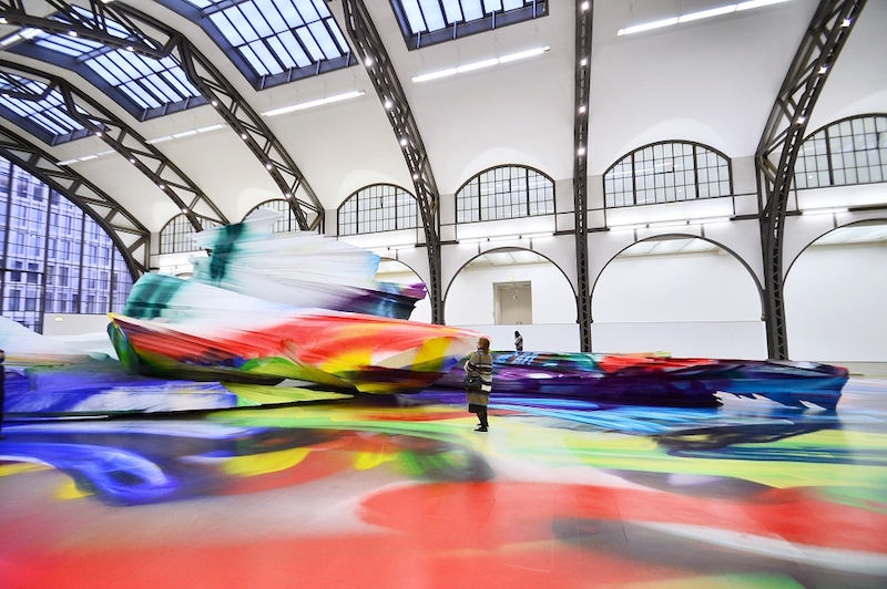 La pintura expansiva de la Katharina Grosse invade de vibraciones multicolor el hangar de Hamburgher Bahnhof en Berlín, la antigua estación de tren de Hamburgo convertida en museo. Titulada “It Wasn’t Us”, la instalación site-specific se prolonga para dar la bienvenida al nuevo año, hasta el primero de enero.