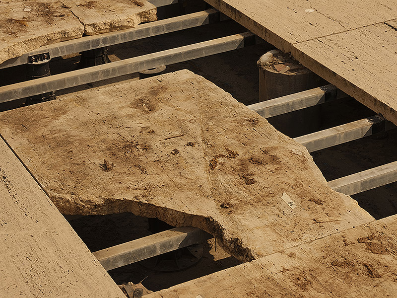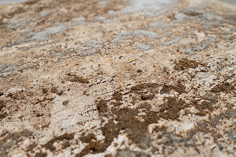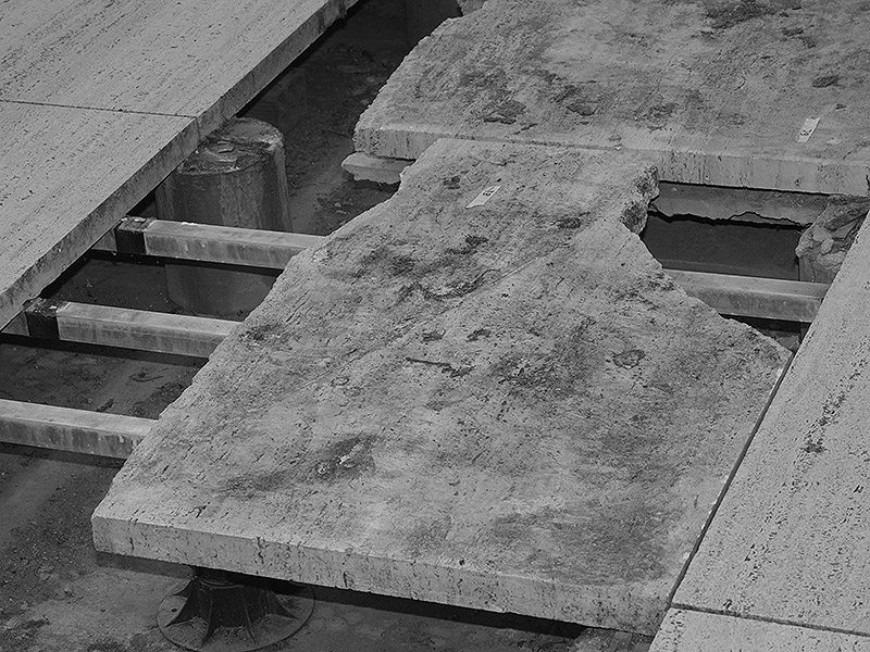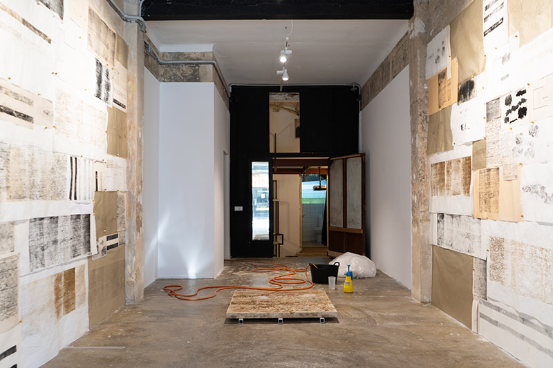 En la trastienda de la galería, un calendario registra diariamente los cambios y cuidados que los artistas, galeristas y visitantes realizan sobre la losa. “En este mismo espacio, juntamente con el wáter, es donde se muestra la documentación generada por los estudiantes del Meats Elisava, a través de un dossier de trabajo y la proyección de un vídeo. También se expone el libro publicado por Fundació Mies van der Rohe, realizado por las artistas y con la colaboración del fotógrafo Aleix Plademunt, el poeta Vicenç Altaió, la investigadora Ona Bros, y los diseñadores gráficos de Studio Albert Romagosa”, comentan los artistas.