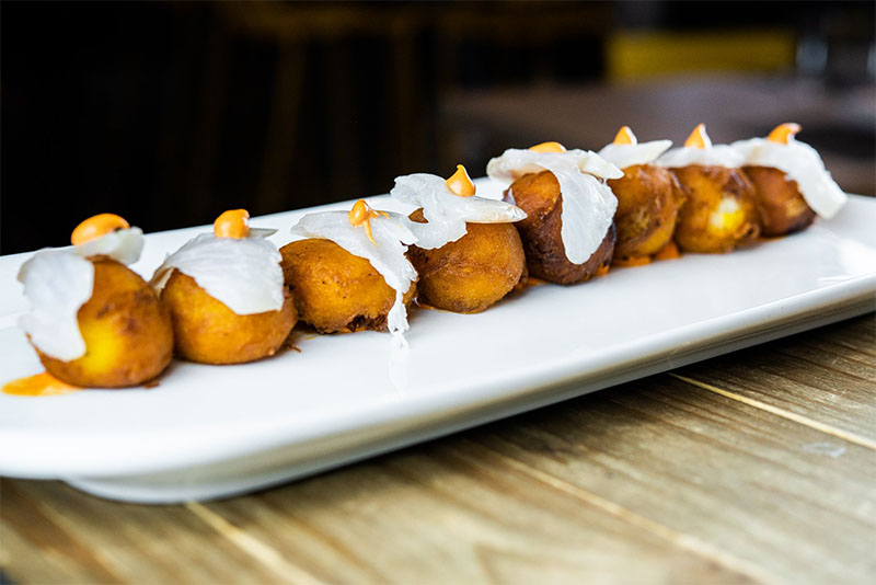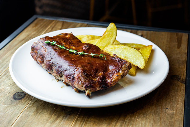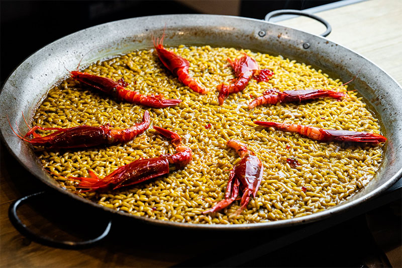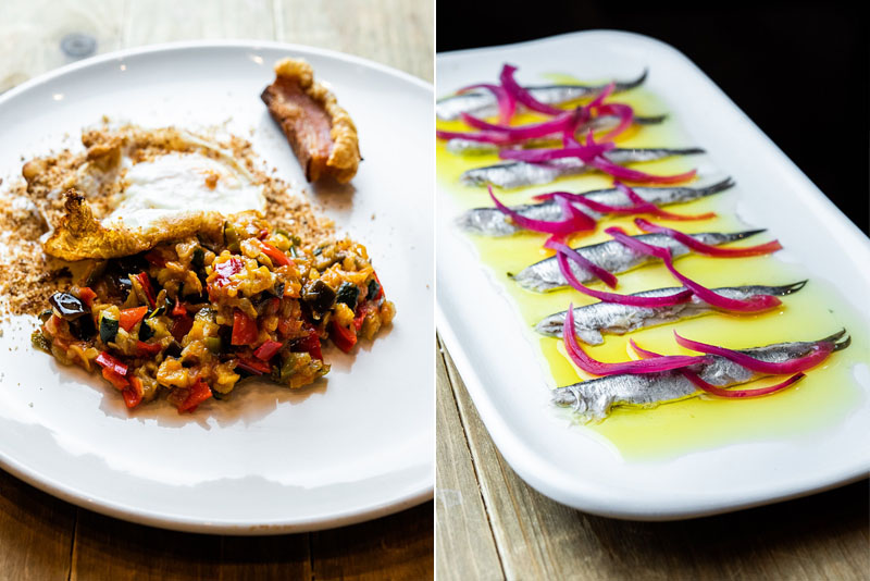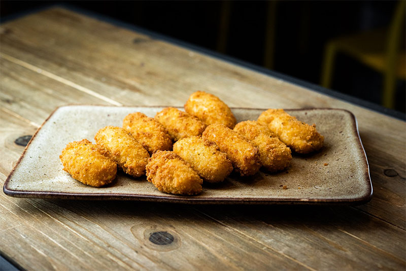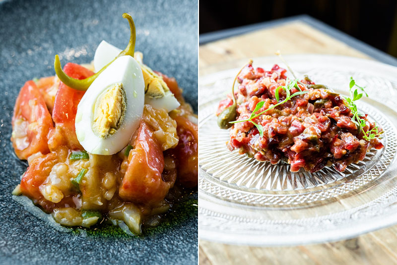 Relatemos: huevos rellenos, ensalada campera, gilda y matrimonio de boquerón con anchoa y piparra, secreto ibérico, ensaladilla rusa, patata revolcona con torreznos, croquetas con jamón, buñuelos de bacalao, bravas, alitas de pollo, bacalao ajoarriero, tortilla de merluza, hamburguesa de wagyu, costilla de cerdo con barbacoa casera, callos a la madrileña, arroz de marisco…