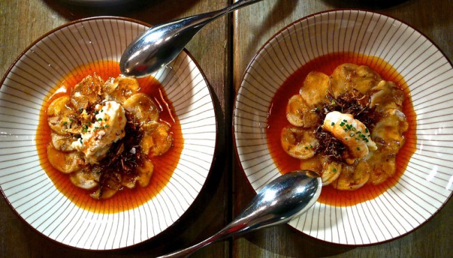 Aunque el centro de Madrid cuenta con bastantes lugares donde se puede degustar buena casquería quizá sea la Tasquería el espacio donde se trabaja este producto de una forma muy refinada, creativa y moderna. Cuando hablo de creatividad me refiero a aplicar procesos de cocina que convierten lo bueno en algo sublime y cuando digo moderna no me refiero a esferificaciones o nitrógeno líquido sino a una fusión de sabores y técnicas que respetan el producto y la tradición pero que coloca a las recetas originales en un nivel superior.