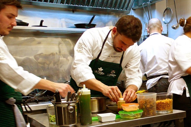 Arriba izquierda: Javi Estévez. Derecha cocina abierta en el interior de la Tasquería.