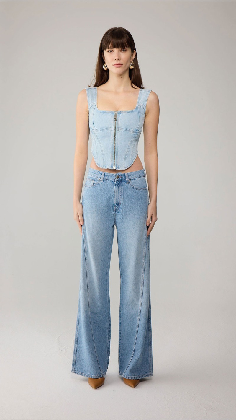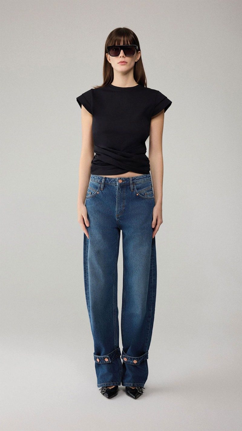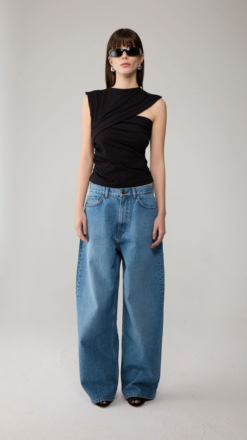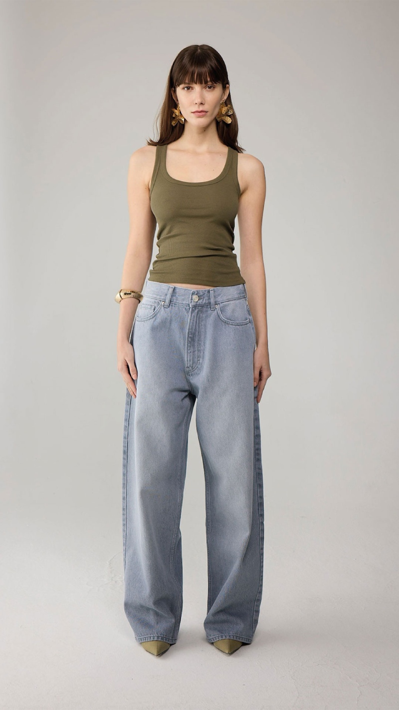 El resto de la nueva colección de Rhodaine no deja atrás otros cortes de vaqueros, ojo. Dentro de este nuevo armario, vemos también en puestos protagónicos los vaqueros de corte baggy en todas sus versiones y lavados, los cargo e incluso faldas y uno que otro deconstruido.
