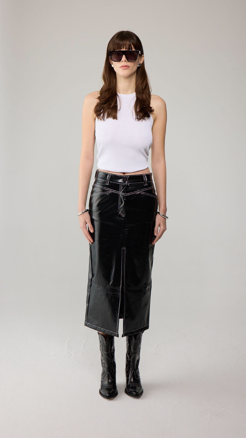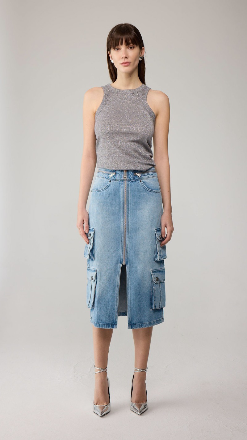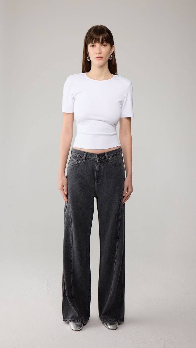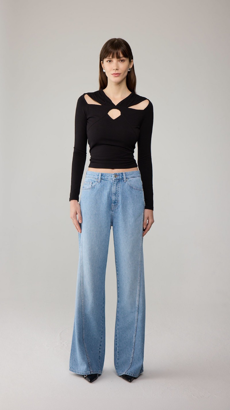 El resto de la nueva colección de Rhodaine no deja atrás otros cortes de vaqueros, ojo. Dentro de este nuevo armario, vemos también en puestos protagónicos los vaqueros de corte baggy en todas sus versiones y lavados, los cargo e incluso faldas y uno que otro deconstruido.