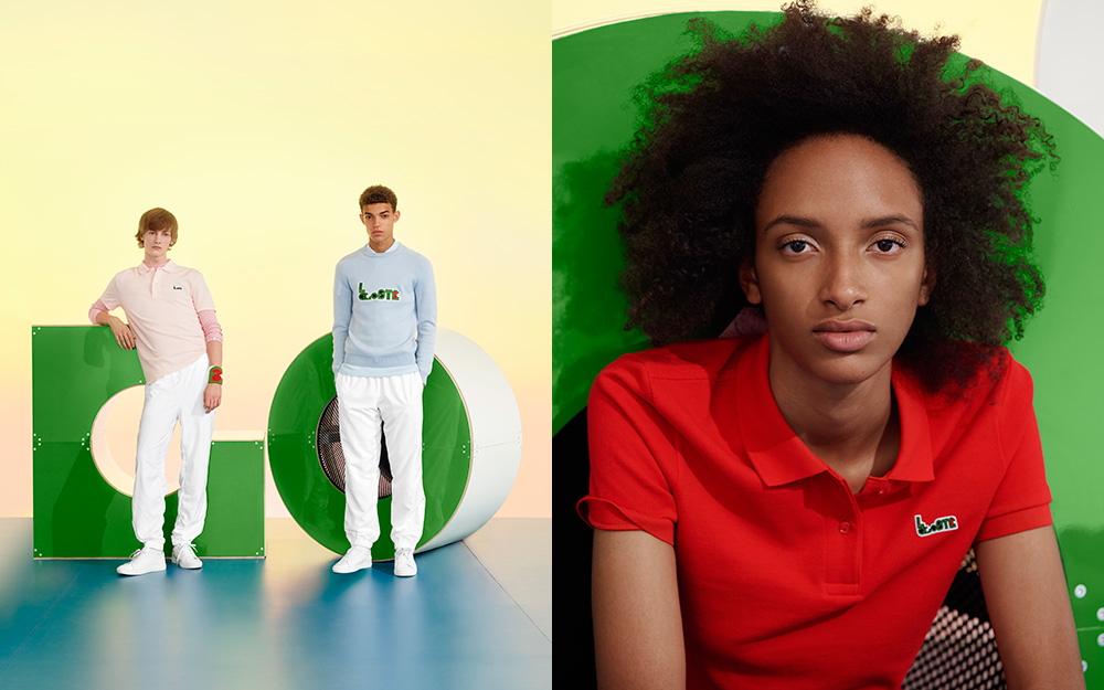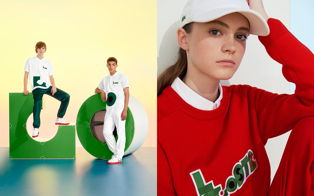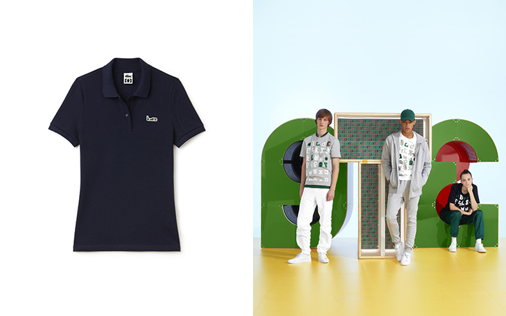 A partir de ese ejercicio tipográfico, Lacoste ha desarrollado una doble colección cápsula, que se divide en una Main Line y en una Edición Limitada. Las prendas de ambas propuestas se han producido en los colores clásicos de la marca (blanco, azul marino, rojo, azul cielo y rosa flamenco). La palabra Lacoste va bordada en tonos rojo y verde, sustituyendo al cocodrilo de toda la vida en los polos de manga corta. Este bordado va también en el centro de las sudaderas, cintas para la cabeza y muñequeras. Además, hay una camiseta con todo el alfabeto creado por M/M paris, donde solo las letras que componen la palabra Lacoste van coloreadas. Estos gráficos se repiten en una cara del bolso reversible Anna, mientras que en la otra cara se muestra un estampado con el logotipo del estudio parisino.