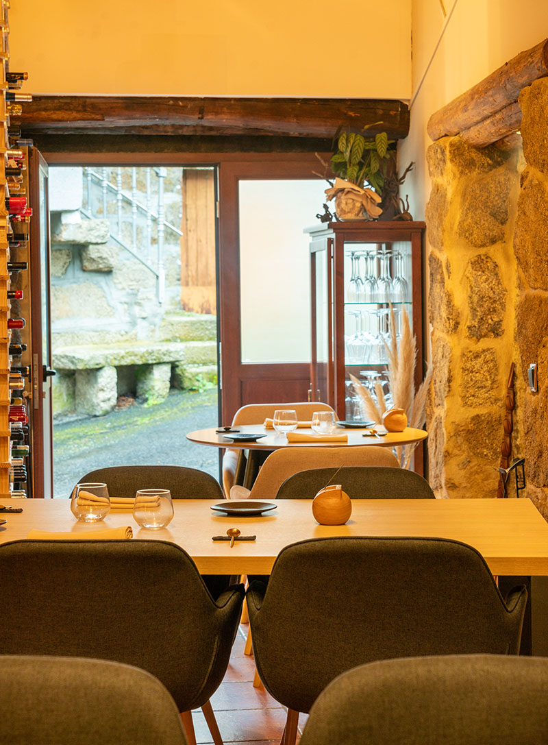 Tras su paso por Lugo, donde cosecharon el aval de la Guía Repsol y de medios de comunicación especializados, Piñeiro y Pereira se asientan ahora en la planta inferior de la casa rural Casa As Fontes -propiedad de la familia de Elia- con una propuesta conscientemente recatada: catorce comensales, dos menús degustación y una esmerada atención al producto de proximidad. Brétema (50 €) y Lado (65 €) son los itinerarios gustativos del restaurante, ambos sujetos al discurrir estacional y a los condicionantes del mercado.