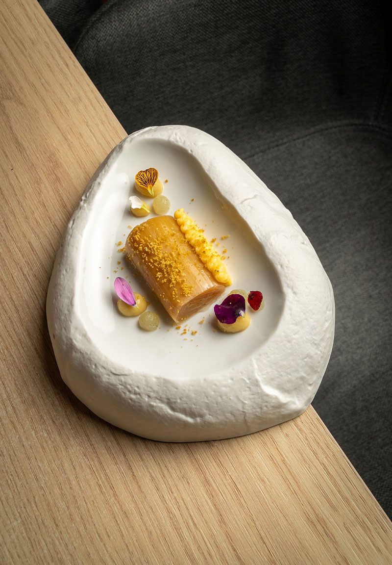 “Partimos de elaboraciones tradicionales, pero las reinterpretamos con una visión actual y creativa”, declaran los fundadores de Lado. De ahí que su cocina persiga una constante interlocución con el paisaje que la nutre: el Parque Natural del Xurés, las huertas limítrofes, el Atlántico gallego y, como se indicaba en el párrafo precedente, los proveedores vecinos.