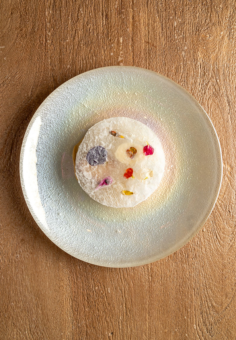 En el tramo final, Elia firma la parte dulce con una elaboración de frambuesa, kéfir y vainilla, a la que sucede un pain perdu con crema de miel, haba tonka y teja helada y, por último, petit fours.
