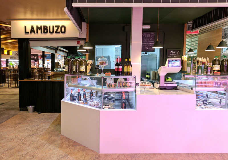Imagen superior: En primer plano tienda Lambuzo y en segundo plano el restaurante del mercado de Chamberí