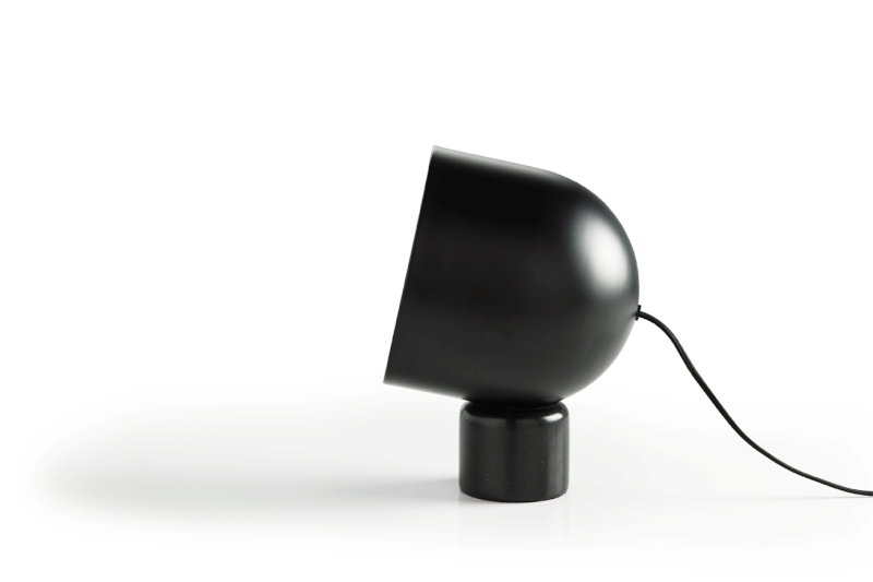 Faro es el nombre de esta lámpara de mesa ajustable que está dividida en dos partes, la base y la tulipa. La base cilíndrica de mármol tiene un imán en la parte superior, rodeado de fieltro, que permite que la tulipa se mantenga en la posición correcta. De esta forma quedan unidas las dos partes de la lámpara sin ningún tipo de herraje.
