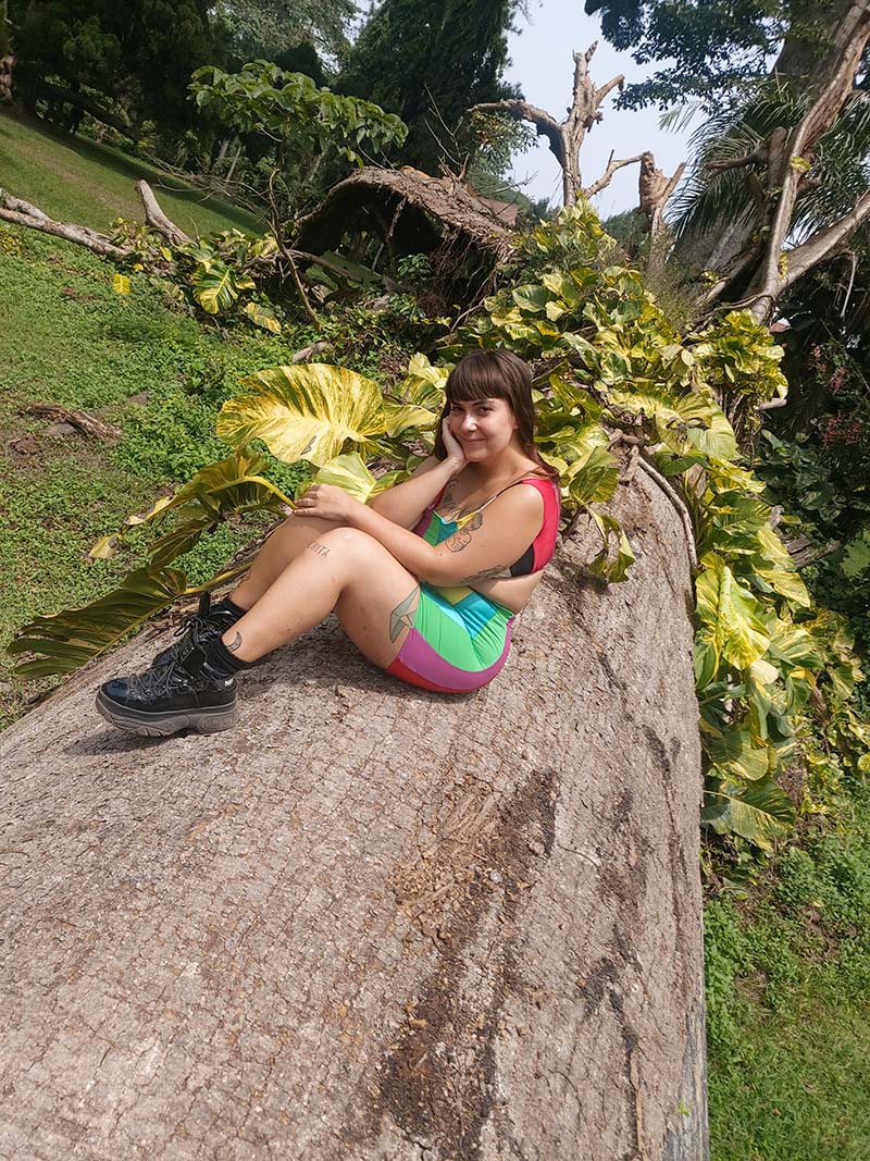 Me siento arropada, les encanta la diferencia, todo lo artístico, la creatividad y me siento muy, pero muy arropada. Cosa que aquí en España, por los medios generales y la música, no me siento nada apoyada, la música en general, no me siento nada comprendida y siento que no se entiende ni el tipo de género que me interesa a nivel musical ni el tipo de obras más plásticas que realizo y estar en un sitio que te sientes súper arropada, súper entendida, súper en sintonía, es algo muy guay que me hace sentir super bien.