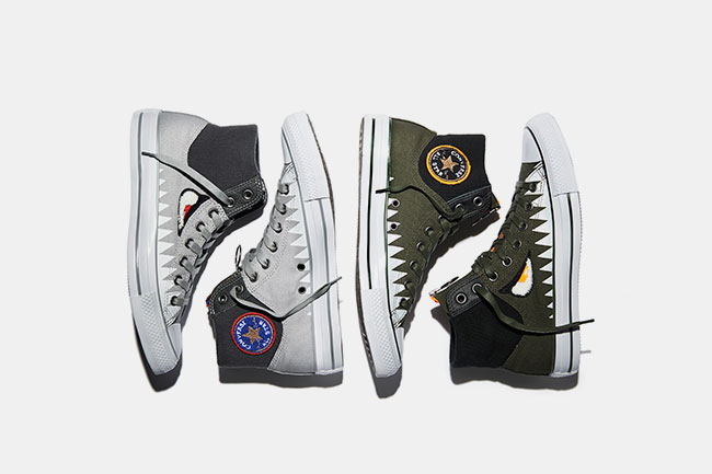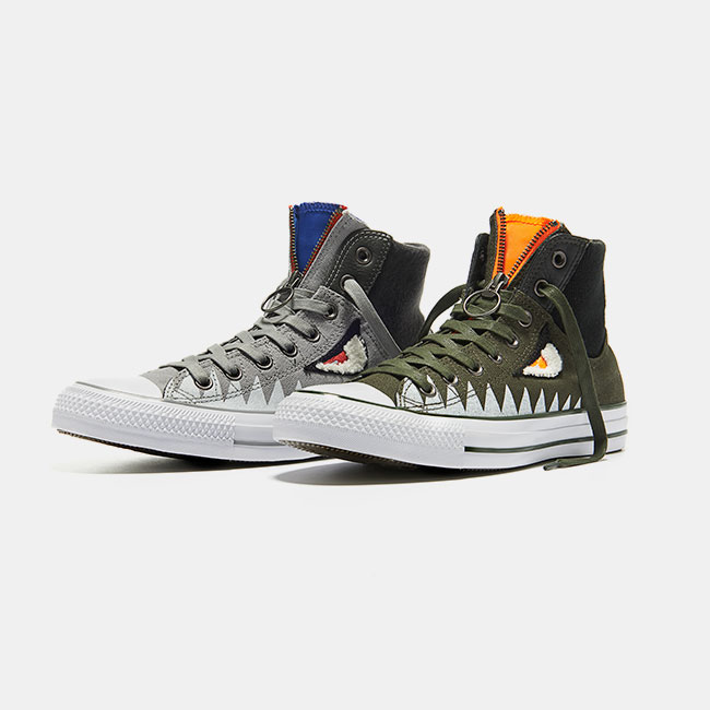 Las Chuck Taylor All Star MA-1 Zip Shark Pack están inspiradas en la gráfica de los míticos aviones de la II Guerra Mundial, con un acabado que recuerda a las bocas de tiburón que veíamos en los escuadrones de los Curtiss P-40 Warhawks. Además, tienen muchas más reminiscencias army con detalles que recuerdan a las bombers de los pilotos de aviación de antaño: cuello de la sneaker en punto, cremallera en la lengüeta, parches bordados en colores vibrantes… Otras particularidades que convierten a esta zapa en un modelo premium toral es una base de lona más gruesa.