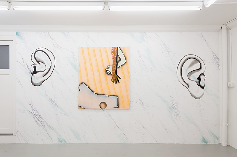 La obra de Margnetti es buena y procedente empezando ya por lo formal, por la primera impresión, esa hostia visual según te encuentras con ella. Habla del individuo a través de los recursos anatómicos que componen toda su obra, algo común hasta ahí, sí, pero ella retuerce las formas y las lleva a lo chusco y lo cómico y no utiliza partes nobles, esto es muy importante, ya sabes, ni torsos viceversos o caras angelicales, ni tetas turgentes de premio, si no restos. En Sarah Margnetti hay despieces por todas partes, es el material con que se hacen las salchichas: orejas, codos, rodillas y narices. Y después armoniza el conjunto con trampantojos, fondos de maderas innobles y telas de broma que esconden a sus personajes. Esto produce una poética inusual, una teatralidad inquietante y ahí comienza su jodida belleza singular.