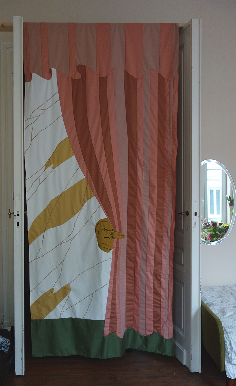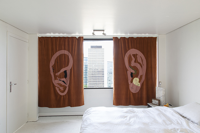 Hay humor y belleza en el tono. El humor es siempre critica, el humor es un drama y es carpe diem también y así funciona aquí. Sus obras son como los culos que ella pinta, igual de sexys, que ordinarios o naif, esa ambivalencia tan ideal. Su obra es erótica pasada por el filtro de lo soez, se nota en el uso de colores vegijogos, desvaídos y en la composición, en el modo en que dispone en el espacio esas fosas nasales grandes desproporcionadas. También está en esa uñas largas que hablábamos. Hay una referencia a la vida intima que me gusta lo que más y no es algo menor. Habla del cuerpo desde la higiene personal, es una puesta en escena de nuestro mundo privado, el cuidado personal e intimo. Éste matiz es de lo mas útil para enmarcar su obra en el momento presente, por que parece hablar de una sociedad hedonísta y superficial que siente que necesita esconderse y evadirse.