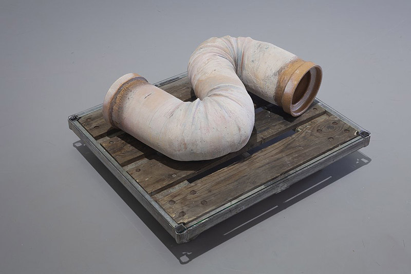 La obra principal de esta muestra presenta una enorme pendiente tubular, un halo que se relaciona con el matemático alemán August Ferdinand Möbius (1790-1868). Möbius trabajó con la geometría, la astronomía teórica y acuñó el objeto matemático tira de Möbius, banda de Möbius o bucle de Möbius en 1858. La banda de Möbius es básicamente un anillo, de forma circular y superficie no orientable, formado por una banda medio retorcida. La versión de Koo de la banda de Möbius tiene un giro extra, ya que Koo ha cortado trozos en sus intersecciones y ha materializado estos cortes como esculturas ampliadas.