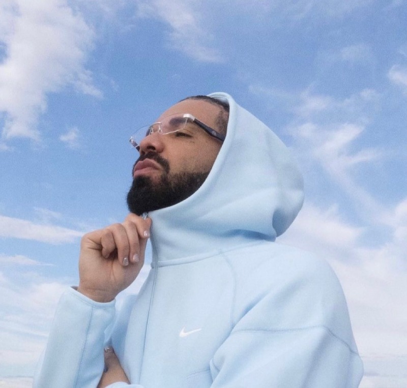 Drake con chándal de su línea Nike X Nocta. Foto vía @champagnepapi.