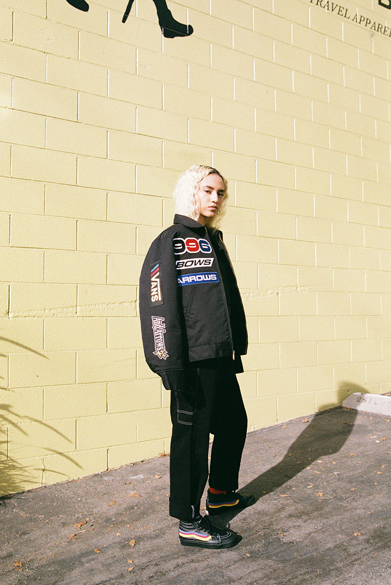 “Somos verdaderos fanáticos de las zapatillas altas y las Sk8-Hi son de nuestras favoritas, así que estamos entusiasmados por la oportunidad de hacer una versión claramente nuestra. Las tres capas del “jazz stripe” se superponen para dar una sensación de textura. La parte superior y el forro interior fabricados en cuero negro contrastan con las costuras blancas, que se pueden ver también en la etiqueta de Bows and Arrows en la lengüeta, además de una suela exterior a rayas. Nos encanta la suela vulcanizada negra cubierta por las franjas en colores primarios inspiradas en los deportes de motor y los gráficos tradicionales.” explica la gente de Bows and Arrows.