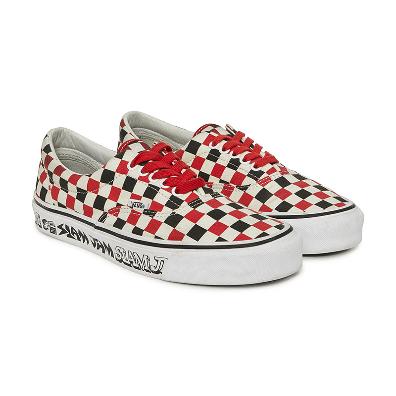 “Para estas OG Era LX, nos inspiramos en las OG Vans de 1980 de Luca Benini, del equipo de Slam Jam. Presentan los colores oficiales de Slam Jam: el negro, rojo, blanco y negro y el clásico checkerboard de Vans. La silueta lleva los logotipos de Slam Jam diseñados por Fergus Purcell, alias Fergadelic.” explica la gente de Slam Jam.
