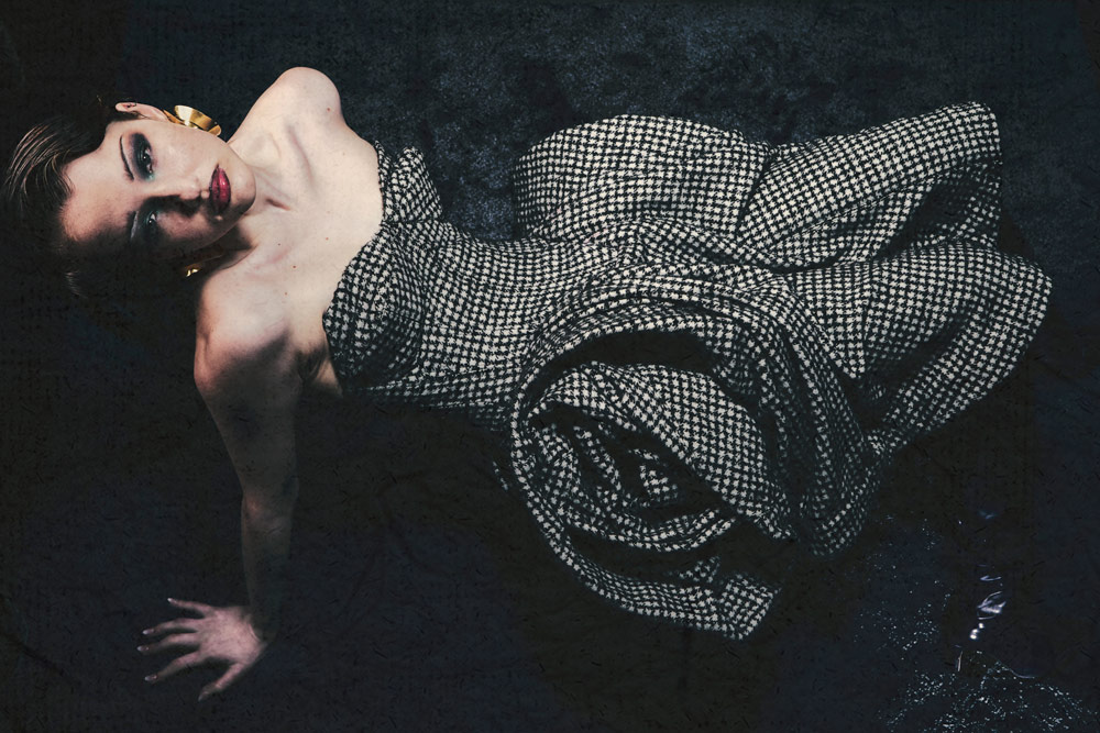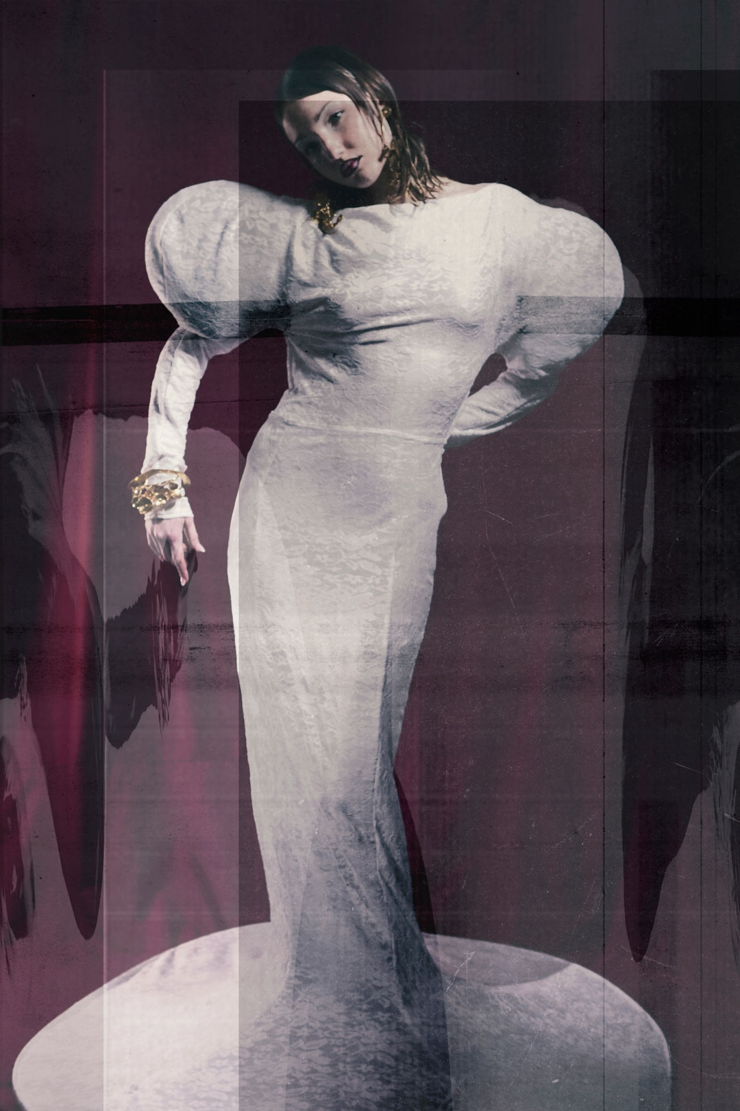 Autoengaño & Autoexpresión: Vestido KAYLA JOY LIM + Pendientes y brazalete FERNANDO RODRÍGUEZ para Marc Juan Comunicación
