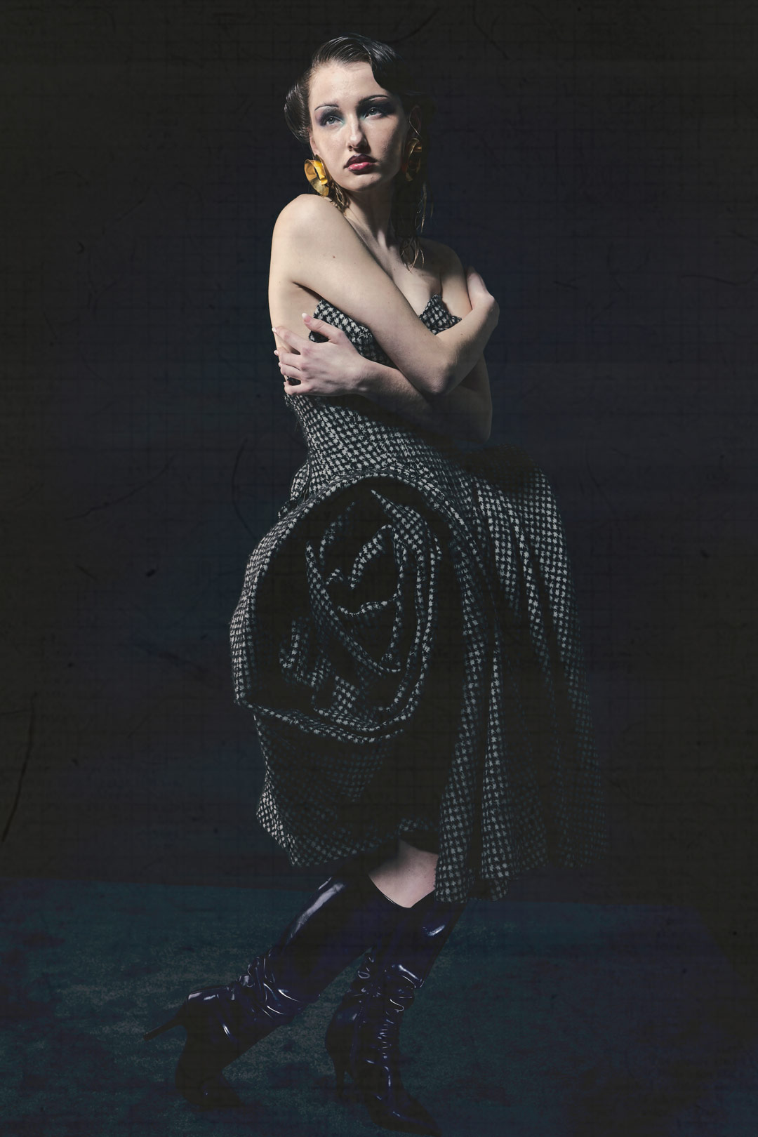 Autoexpresión & Autoengaño: Corsé, falda y guantes LUIS COLOM + Pendientes GA GO O STUDIO