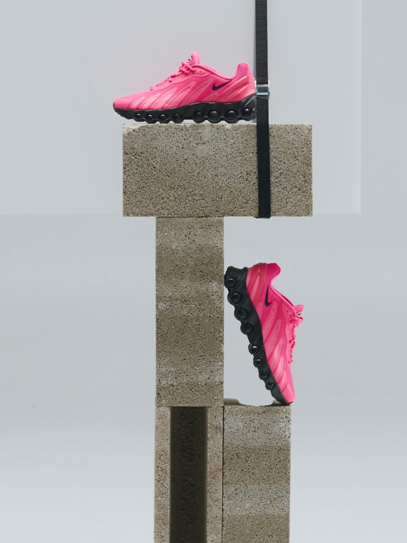 En términos de diseño, las nuevas Nike Air Max Dn8 siguen el lenguaje primordial de la línea: el juego con las transparencias como símbolo de la innovación. Esta nueva silueta lleva el concepto a un nuevo nivel, con un lower completamente transparente que juega con superficies brillantes y mates en el cuerpo superior. El color también juega un papel importantísimo. La silueta se estrena en Hyper Pink, un rosa flúor que marca una declaración de intenciones fuertes y que refuerza la identidad rompedora de la silueta.