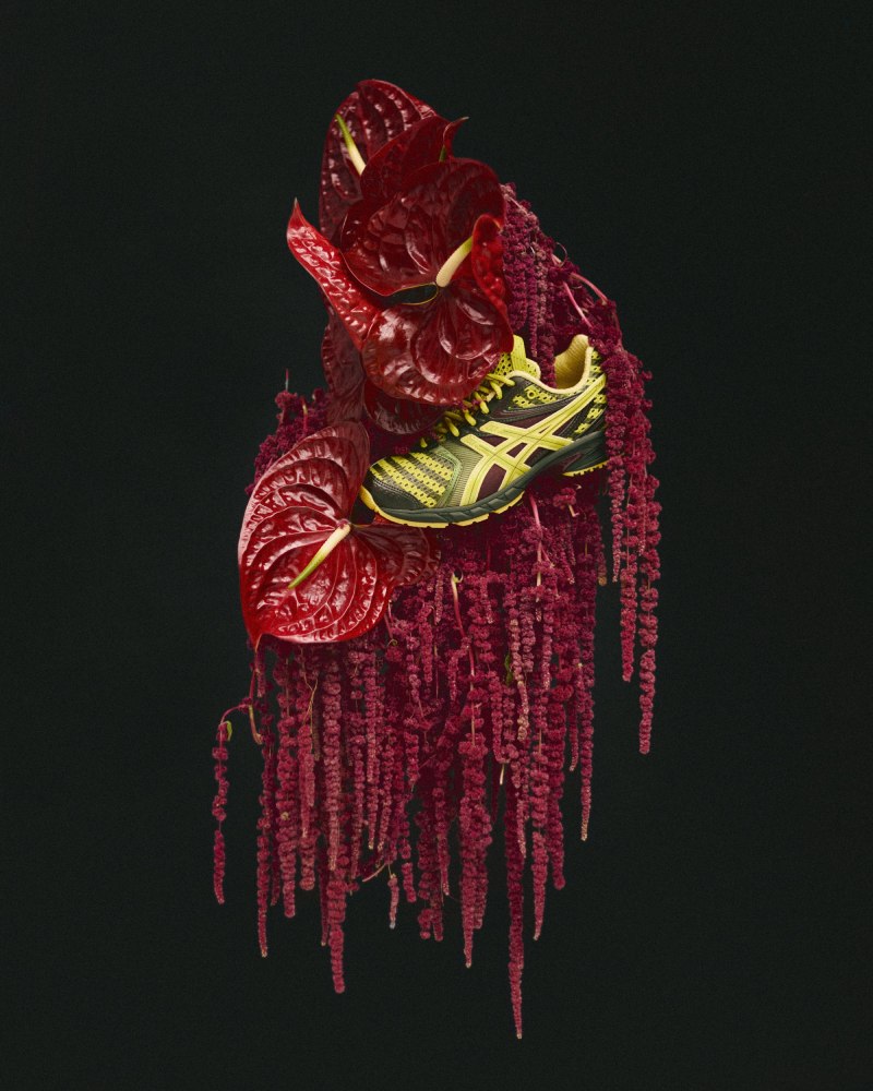 Con esta inspiración detrás (y para dejarnos muy claro que las tienen en stock) Footdistrict ha desarrollado su propio editorial; también con inspiración natural. Aquí, las flores son símbolos que han simbolizado desde siempre la transformación y el dinamismo de la vida misma. También, este theme actúa como una invitación al movimiento (tal y como lo hace la base conceptual de esta silueta).