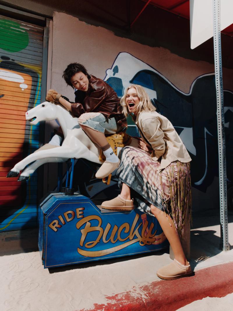 Pero ojo, la campaña Iconic Design no es un push por que llevemos única y exclusivamente sus botas que todos conocemos. Todo lo contrario, esta nueva apuesta de Ugg se enfoca en celebrar el legado de este modelo como reclamo para seguir vistiendo bien. Eso si, es legado reinventado, ya que sus modelos icónicos se presentan con un makeover bastante interesante, que ayuda a que se mantengan vigentes y versátiles para nuestro armario. Y si te preguntas quiénes son las otras caras de la campaña, tenemos a los modelos Elsa Hosk y Alton Mason, así como la compositora y artista Leah Douh.
