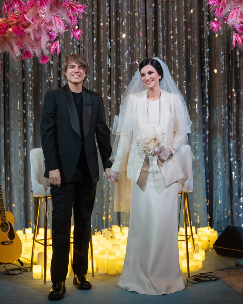 Paolo Carta y Laura Pausini durante su boda -tras 18 años siendo pareja- en el año 2023