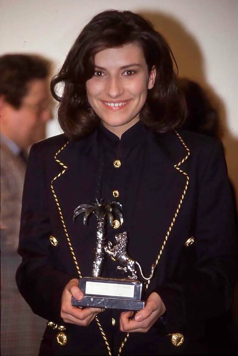 La icónica cantante Laura Pausini (@laurapausini) con su Premio en el certamen de San Remo en el año 1993