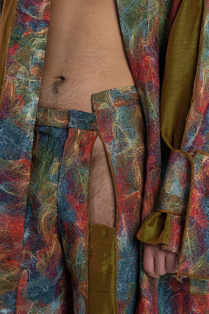 ¿Y sobre la colección Le Manoir? Esta colección es muy distinta a todo lo anterior. Nace de la renovación, buscaba crear piezas únicas y “raras” con materiales cotidianos y del hogar, es un claro ejemplo de contraste. Los materiales de tapicería dan mucho juego y siempre son los olvidados de la moda, por eso quería darle una toque especial a esta colección renovando alfombras, cortinas, edredones…