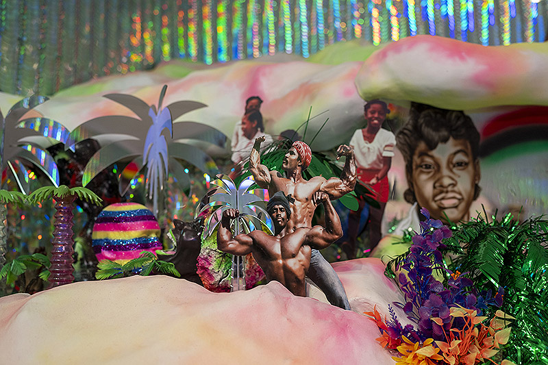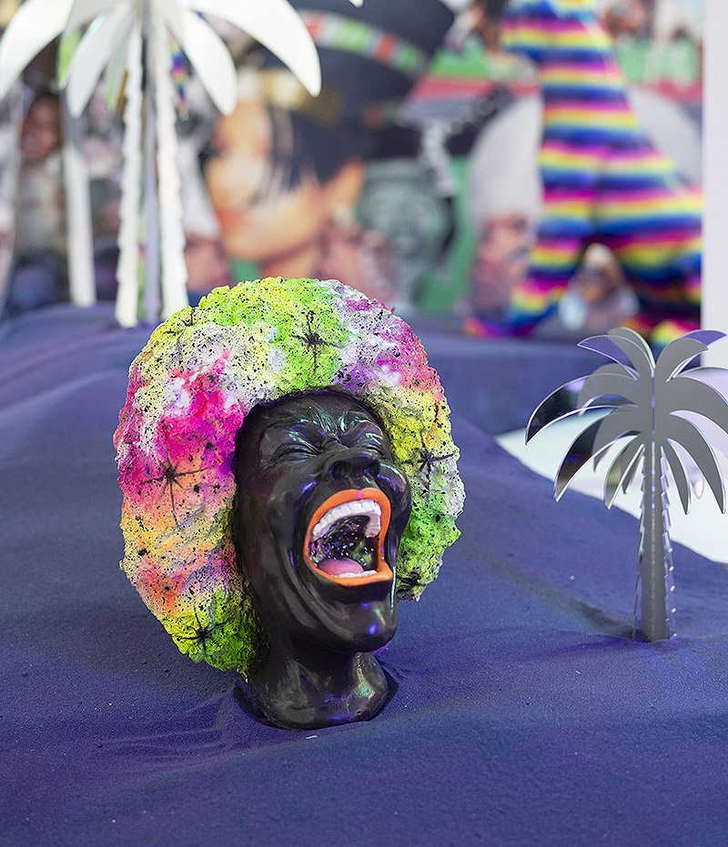 El arte de Lauren Halsey reivindica el poder de la comunidad negra, no solo desde la memoria y la resistencia, sino también desde la celebración de su diversidad y fluidez. Su fascinación por el funk trasciende lo musical: lo entiende como una forma de pensar la identidad, donde los límites entre lo masculino y lo femenino, lo real y lo fantástico, lo serio y lo lúdico se desdibujan. “Lo que me atrajo de Parliament-Funkadelic cuando descubrí su música de niña fue ver a hombres ‘heterosexuales’ que se atrevían a jugar con la ambigüedad de género, con las pelucas, los vestidos, las identidades múltiples”, explica la artista.