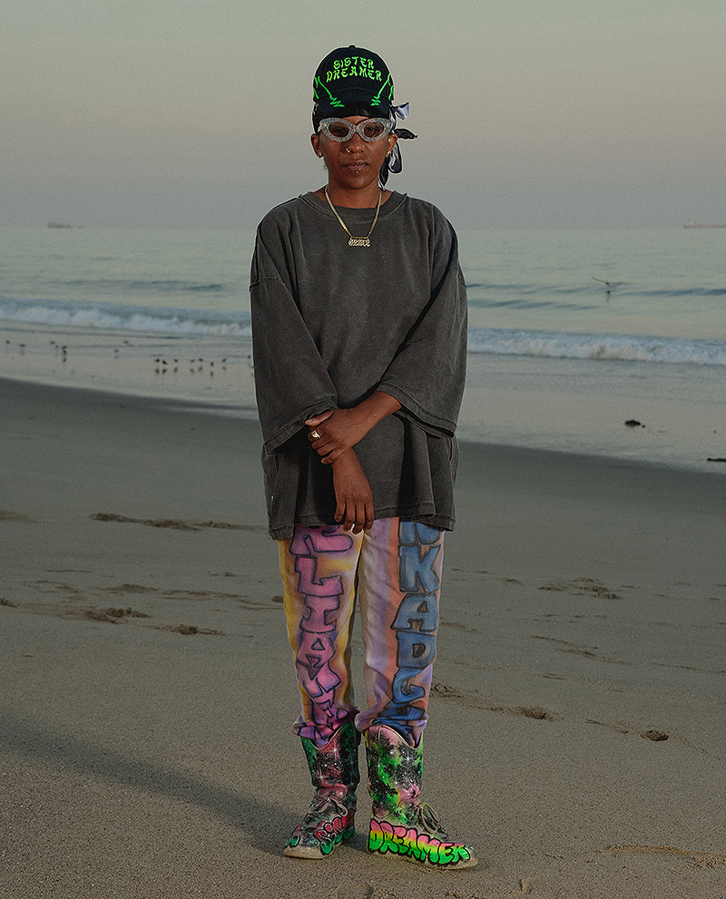 Me siento muy atraída por el vecindario, especialmente por nuestra cultura material. Mi trabajo explora y celebra una narrativa alternativa: una narrativa de South Central L.A. en la que estás en una determinada calle y existes dentro de una paleta energética, acogedora y hermosa.” Lauren Halsey
