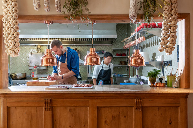 Imagen superior: El chef Stéphane del Río en la cocina de Le Bistroman Atelier