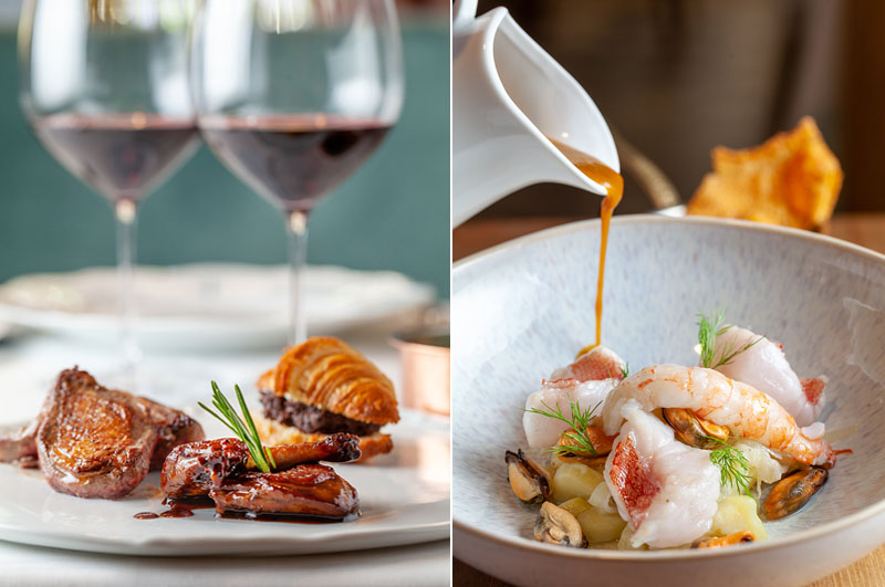 Imagen superior: Algunos de los platos de aves y marisco de Le Bistroman Atelier