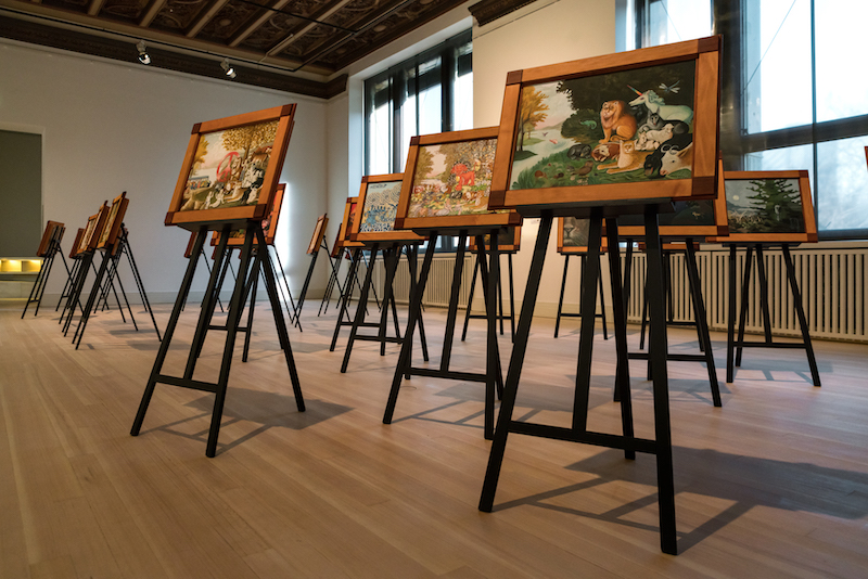 Entre toda esta intimidad y sutilidad, llama mi atención un proyecto un tanto diferente, Our Peaceable Kingdom (2020). Visualmente pasa desapercibida y recuerda al mercadillo de cuadros de Montmatre para turistas, pero de nuevo, y como me está ocurriendo en una serie de shows que visito tras el confinamiento, Lee Mingwei parece experimentar un déjà vu de lo que está sucediendo en este momento en el planeta.