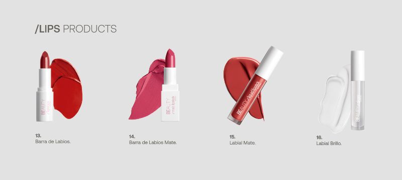 Continuamos con los labios. En BEauty vas a tener ese producto que has estado buscando, para atraer todas las miradas en tus labios. Gloss o pintalabios líquidos, cremosos o con efecto mate. Todos son productos de fácil aplicación y que podrás guardar en tu neceser de viaje, de baño o en un bolso. Tanto en el gloss, como en el pintalabios cremoso, tienen un total de 8 tonos intensos, para realzar el color de los labios durante las 24 horas del día.