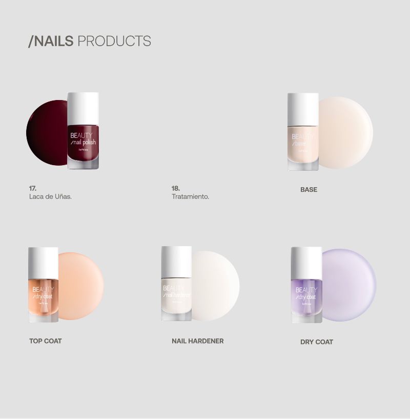 Toca el momento uña. A pesar de que ya no hay tanto furor con las uñas XXXL, sí que sigue el cuidado y mantenimiento de las uñas. Un total de 16 tonos tiene la colección de esmalte de Lefties. De hecho, tienes que saber que hay diferentes productos para que tus uñas sean de profesional. Desde este momento, debes tener la base (protege y refuerza); top coat (acabado duradero); dry coat (secado rápido); y nail hardener (antiroturas).